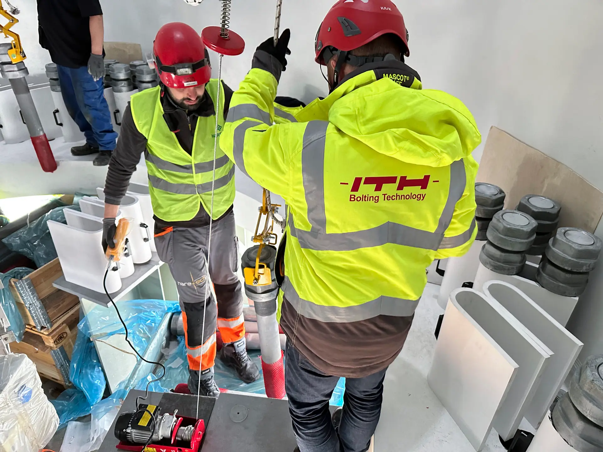ITH developed three-stage Bolt Tensioning Cylinders for this project, which enable high preloads even with limited space. Pillar cranes were also used for simple handling. Pumps with a customer-specific PD system were supplied to document all bolting processes.