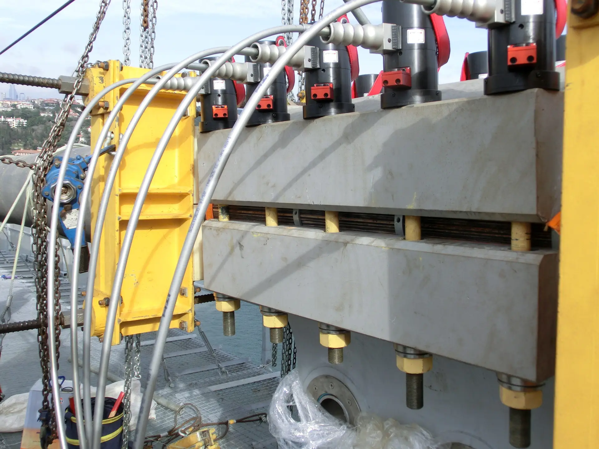 Die Bosporus-Brücken in Istanbul sind essenzielle Verkehrsadern zwischen Europa und Asien und tragen täglich über 400.000 Fahrzeuge. Ihre Stabilität hängt maßgeblich von den Tragkabeln ab, die aus hochfestem Stahl bestehen und mit spezialisierten Kabelklemmen gesichert sind. Im Rahmen eines umfassenden Wartungsprojekts wurde die Schraubenverbindung dieser Kabelklemmen mithilfe modernster ITH Schraubtechnik überprüft und optimiert. Ziel war es, eine gleichmäßige Vorspannung der Schrauben zu gewährleisten und damit die langfristige Stabilität der Brücken zu sichern.